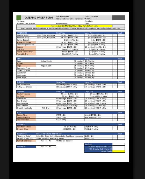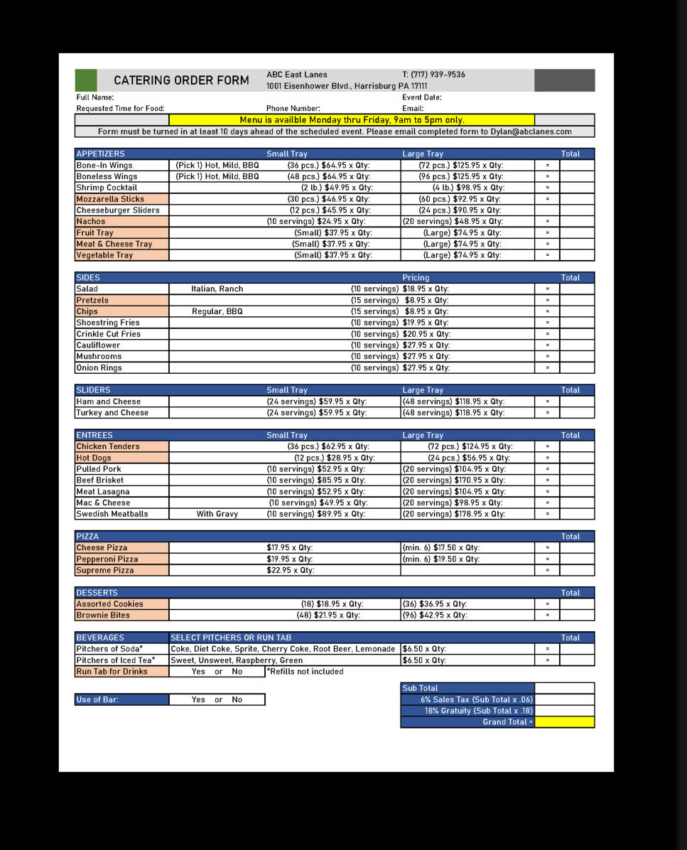 Click here to download our catering order form.