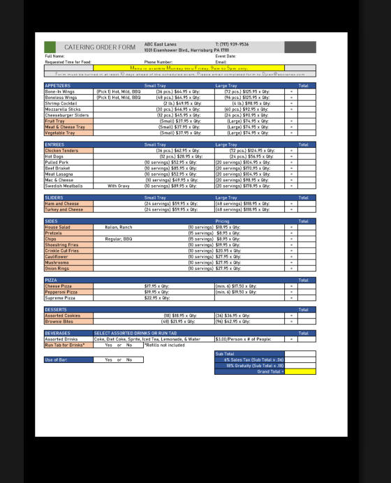 Catering Order Form